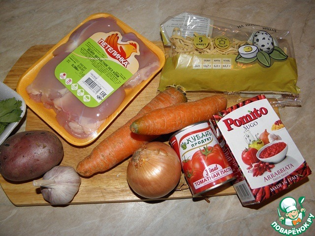 Ингредиенты для «Суп куриный с томатами»: