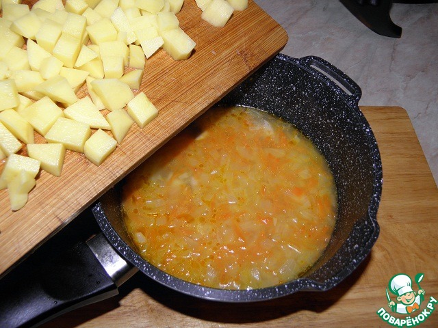 Влить еще немного воды и варить до готовности картофеля. примерно минут 15