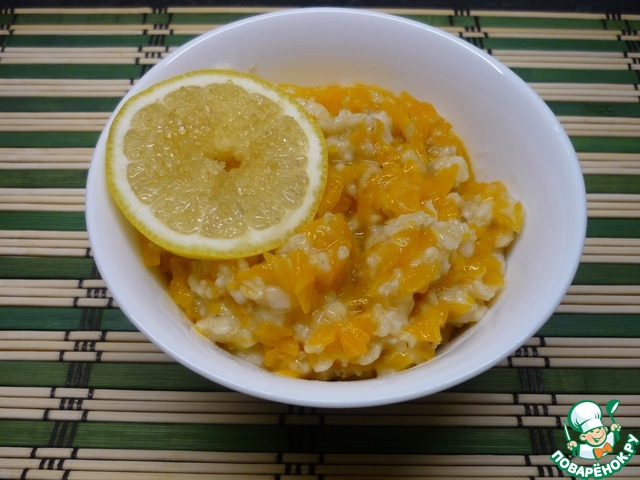 Дольку лимона обмакнуть с двух сторон в сахаре, и выложить на кашу.