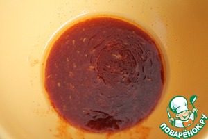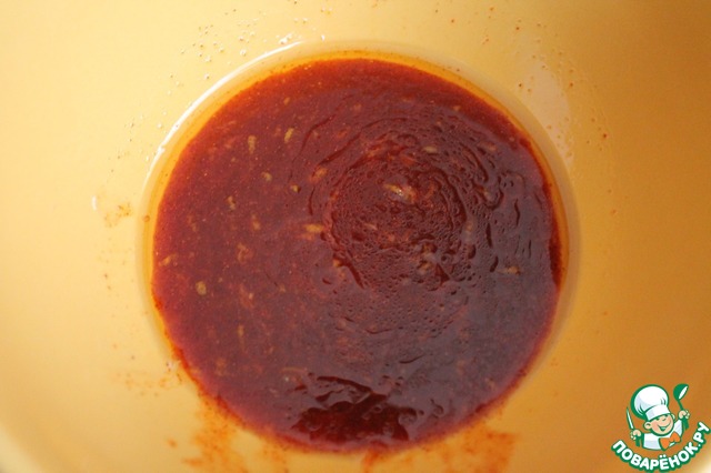 Смешать в миске цедру апельсина, паприку, горчицу, мед, кетчуп, масло и соль.