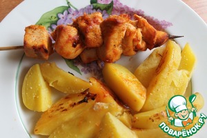 Попробуйте мой куриный шашлычок - с тонкой апельсиновой ноткой, маринованный в необычном соусе, на подушке из запеченного картофеля. Вы получите большое удовольствие!
