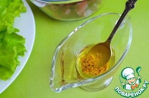В соуснике смешать горчицу и 1 ст. л. оливкового масла, перемешать.