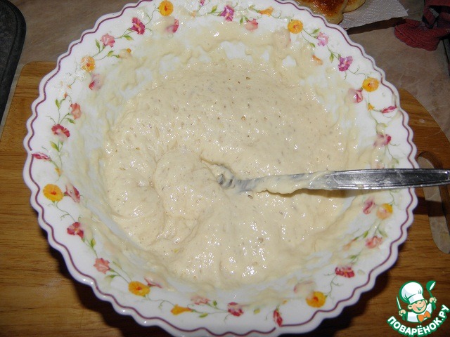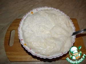 Затем добавить оставшуюся муку, добавляйте осторожно, но тесто должно быть густым (если вдруг переборщите с мукой, можно разбавить теплой водой)