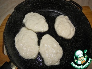 Разогреваем растительное масло на сковороде, выкладываем оладьи