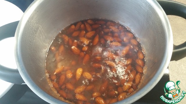 Очищаю миндаль от оболочки. Кладу его в холодную воду на несколько секунд.
