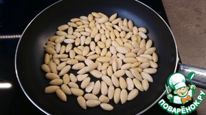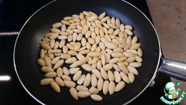 Высыпаю миндаль на сковородку и на небольшом огне высушиваю миндаль в течение нескольких минут. Важно не дать миндалю поджариться. -