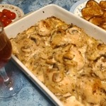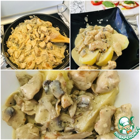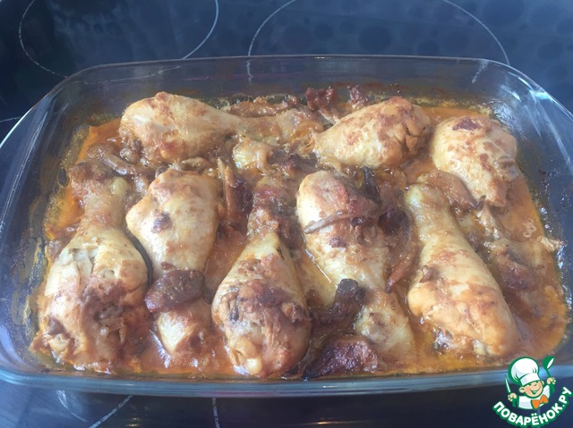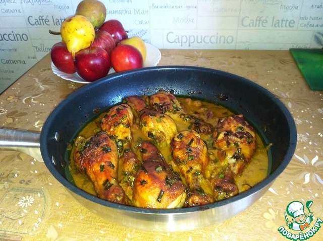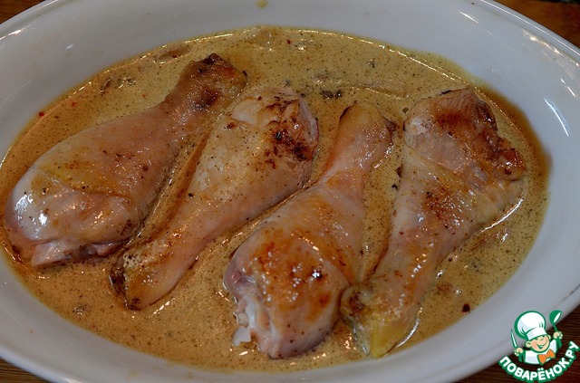Делала всё строго по рецепту за исключением того, что добавила карточку к соусу и курочке.