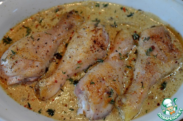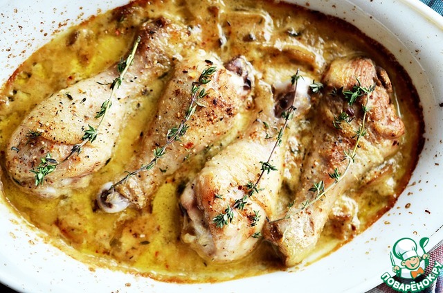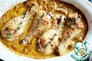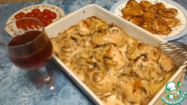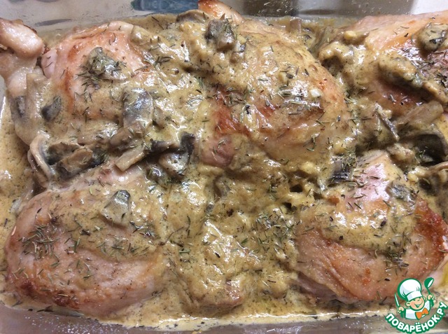 Благодарю всех Поварят за тёплый приём на этом замечательном сайте и, вдохновлённый им, рискну выложить второй рецепт. Курица по этому рецепту получается с хрустящей корочкой, а необыкновенный горчично-сливочный соус с грибами прекрасно дополняет её. Просто готовится, но это блюдо обязательно разнообразит ваш стол.
