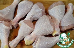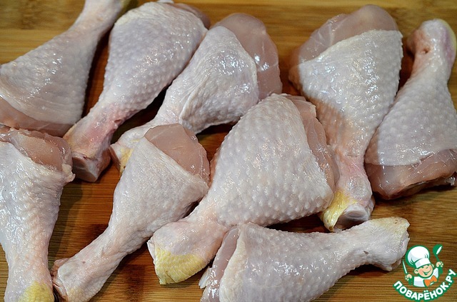 Сверху красиво выкладываем голени. Можно поплотнее друг к другу. Я запекал в двух формах.