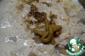 Доводим до кипения и добавляем горчицу. Готовим около 10 минут до загустения. Солим, перчим по желанию.