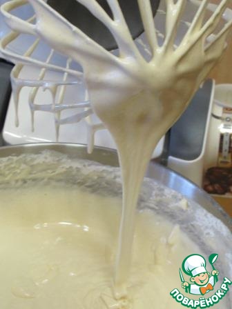 Белки взбить с сахаром до крутых пиков. Мне в приготовлении помогает кухонная машина и на фото видно как она работает.