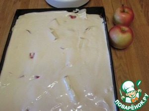 Форму для выпечки застелить пергаментом и хорошенько смазать маслом. Я пользуюсь для выпечки силиконовым ковриком, его я не смазываю, не увлажняю. На фото квадратный противень 30х20 см., можно использовать разъёмную форму D = 23 см.