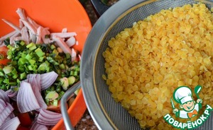 Я выложила назад, заправила майонезом, а уж потом в кольца. -