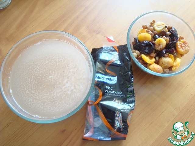 Для плова я взяла рис САМАРКАНД ТМ Мистраль. Отличный рис для этого блюда. Рис нужно замочить хотя бы часа на 2 заранее, а потом промыть Сухофрукты размочить и обсушить бумажным полотенцем.