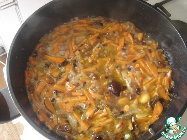 Зирвак - пережаренный лук в сильно накаленном жире, вместе с морковью, заправленный пряностями и специями, предназначенный для дальнейшего приготовления плова (узбекская кухня).