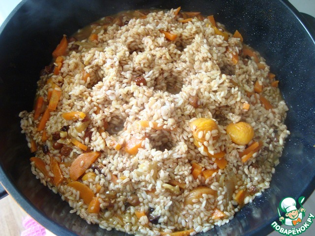 Постный плов с сухофруктами. Сейчас время поста, и это блюдо актуально. Сегодня у меня 2 праздника, и я решила сделать к праздничному столу вот такой вкусный и красивый плов. Я сейчас ем постную еду. Делюсь с вами полезным рецептом)