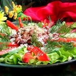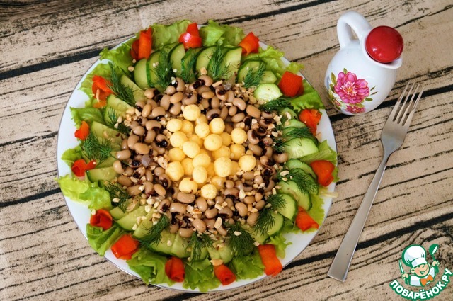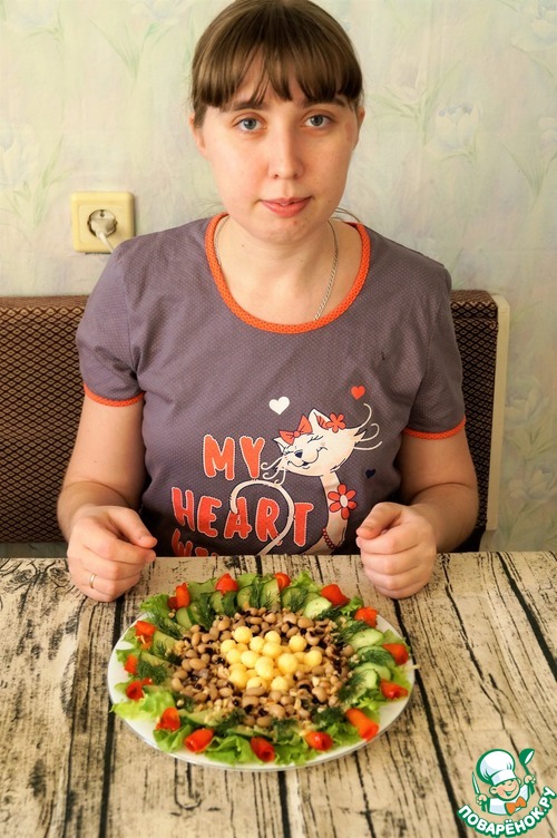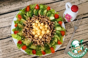 Полить салат заправкой и подать к столу. Приятного аппетита!
