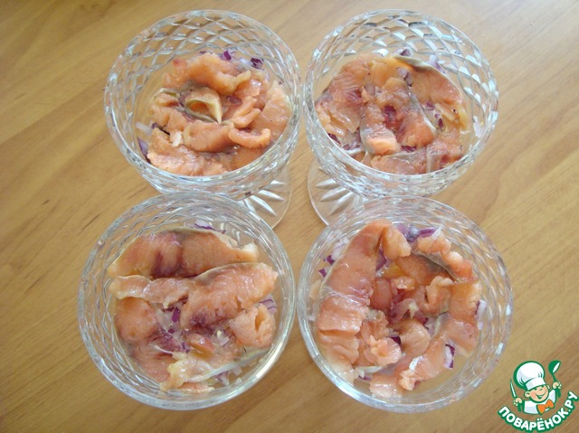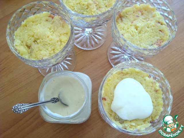 Я делала праздничный вариант шубы и взяла креманки. Хочу поделиться маленьким "секретом". Самый первый слой шубы выкладываем лук, мелко порезанный и поливаем его подсолнечным маслом. Масло погасит ярко-выраженный запах лука в шубе. Этим "секретом" со мной поделилась давным-давно моя двоюродная сестра, а она была профессиональным поваром. С тех пор я шубу делаю только так.