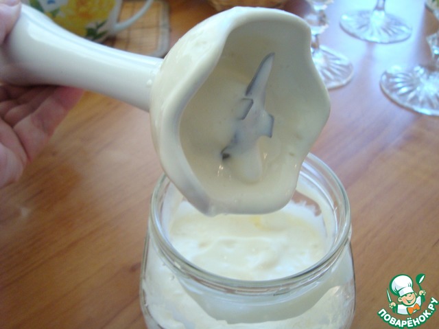 Сделала постный майонез. Взбивала в банке, в которой он будет стоять. Налила 150 мл подсолнечного масла, добавила сахар, соль и лимонный сок, налила 50 мл жидкости из-под зелёного горошка и погружным блендером взбила. Хотите поострее, то добавьте еще 1ч л горчицы столовой. Майонез загустел мгновенно.