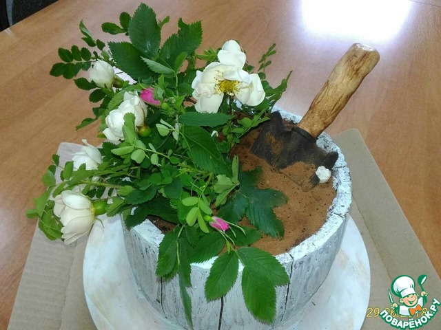 Еще, мне пришла мысль сделать десерт, чередуя слои крема и раскрошенного кекса. Получился такой цветочный горшок. Соответственно, я "посадила" туда и цветочек.