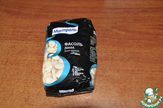 • Для приготовления берём фасоль. Я выбрала "Лима" белую крупную от "Мистраль". Замачиваем фасоль заранее, лучше с вечера. Далее воду сливаем, заливаем свежей в соотношении 1 к 5, доводим до кипения, варим 10 минут, далее огонь убираем до минимального и варим при закрытой крышке 1,5 - 2 часа.