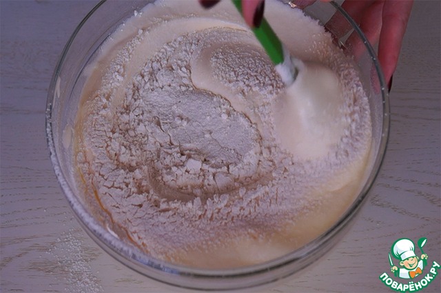 4. Просеиваем муку и ещё раз аккуратно перемешиваем