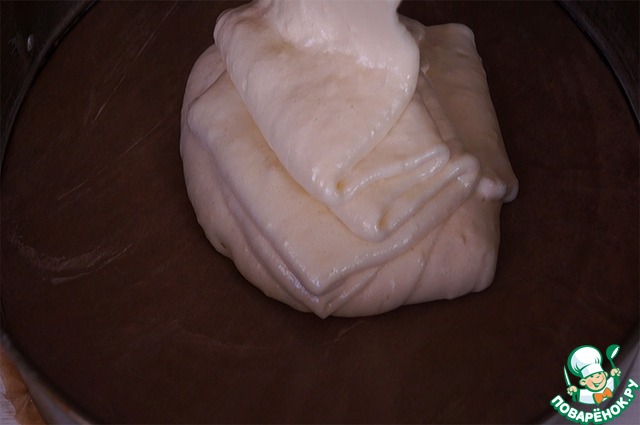5. Форму застелить пергаментом, смазать сливочным маслом и вылить в неё тесто. Поставить в разогретую до 180°С духовку на 35 - 40 минут