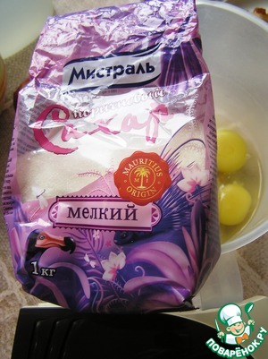 Яйца взбить с сахаром – я брала коричневый мелкий от «Мистраль» - люблю печь с ним.