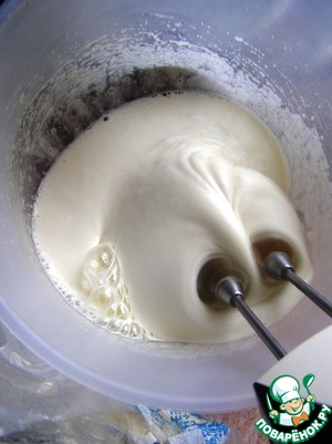 Добавить размягченное масло мелкими кусочками, продолжая взбивать.