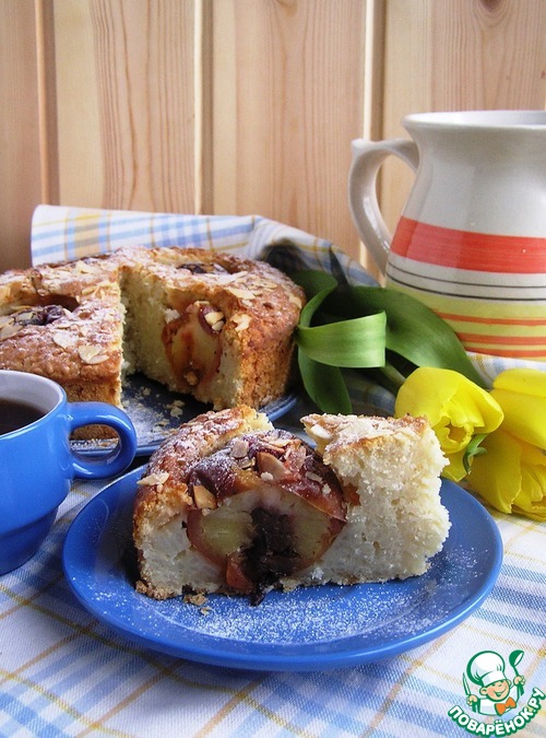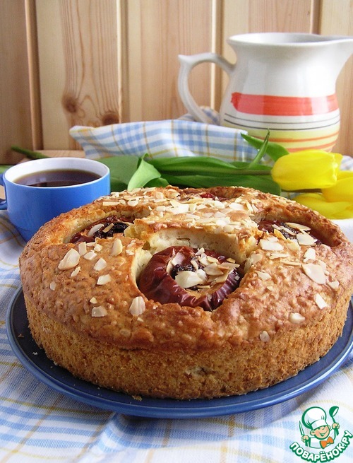 Выложить рисовую массу в смазанную и обсыпанную сухарями форму. Сверху вдавить яблоки и смазать их слоем сливочного масла. Немного присыпать миндальными лепестками. Выпекать в разогретом до 200 градусов духовом шкафу до поднятия пудинга и легкой корочки. Затем убавить нагрев до 170 градусов и печь до готовности.