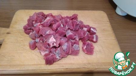 Добавила мясо и обжарила, до тех пор пока мясо не побелело.