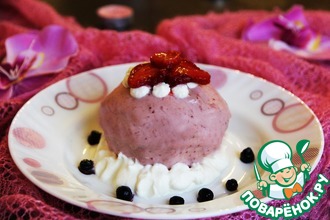 У меня, конечно, нет маракуи. Я подавала с готовым шоколадным соусом и черникой, украсив листиками мяты.