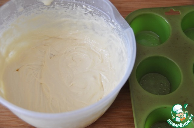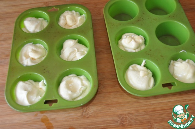 Тесто должно быть по густоте сметаны. Силиконовые формочки смазываем растительным маслом.