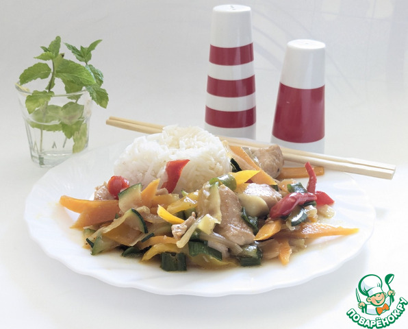 Рядом с нашим домом открылся ресторанчик с азиатской кухней, где делают еду на вынос. Муж как-то вечером принес несколько коробочек этой еды. Я небольшая поклонница азиатской кухни, но с удовольствием съела целую коробочку. А прочитав состав удивилась простоте ингредиентов. Представляю вам блюдо по мотивам, вкусное и полезное!
