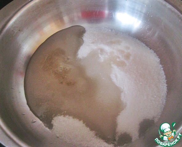 Теперь приступаем к карамели. В сотейнике соединить сахар, воду и лим. сок (не перемешивать!!!). Поставить на плиту иногда помешивая до янтарного цвета.