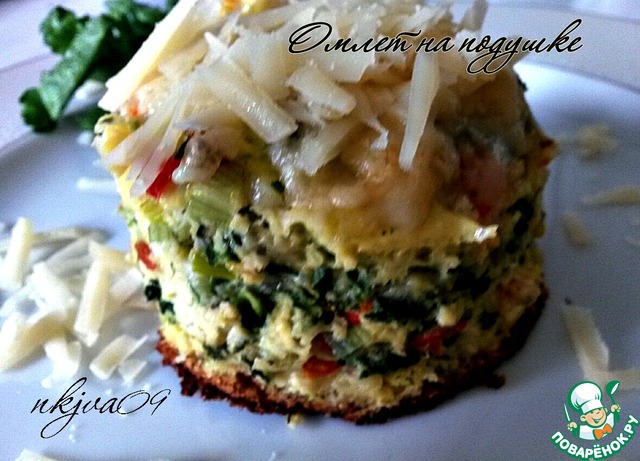 Вынимаем из духовки, сверху посыпаем омлет натертым сыром