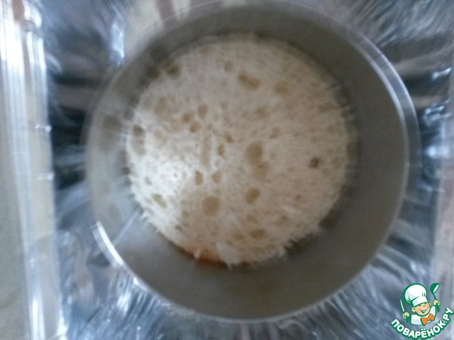 Заполняем смесью кольцо и оправляем в разогретую духовку до 180 градусов на 20 мин