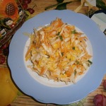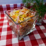 [+5]Кисло-сладкий, освежающий. Лук обычный, поэтому замариновала его предварительно минут на десять, в лимонном соке и немного сахара.