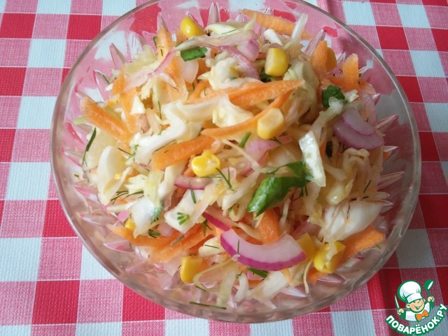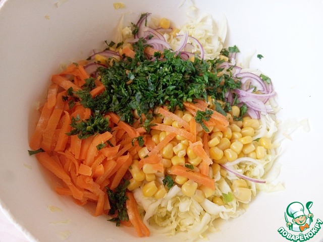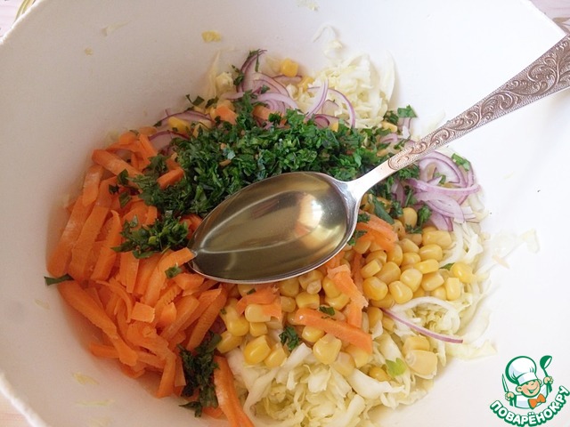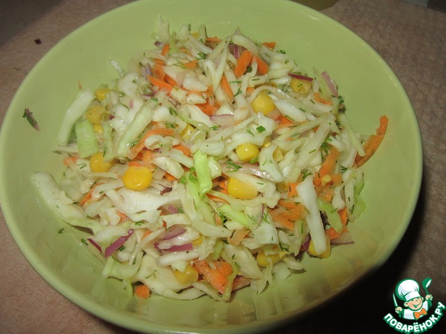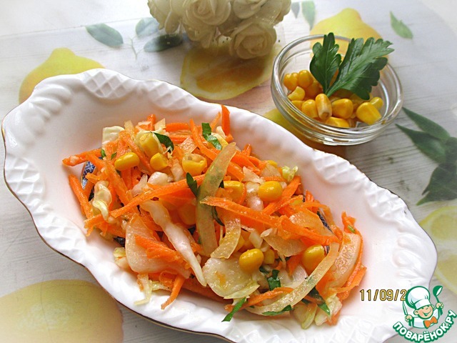 Рецепт «Капустный салат с морковью и кукурузой»: