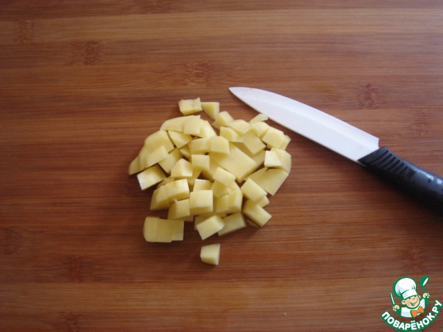 Картофель не обязательно класть в этот суп, но я положила 1 шт, порезав его мелким кубиком.