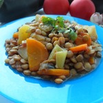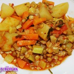 Сразу скажу, что количество ингредиентов рассчитано на 9 человек, не страдающих отсутствием аппетита. Поэтому можно уменьшить все ингредиенты вдвое. Чечевицу замочить в воде на несколько часов.