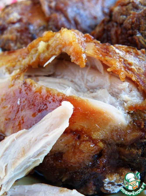 Запекать в разогретой до 220 градусов до хрустящей корочки. Сок при проколе должен быть прозрачным.