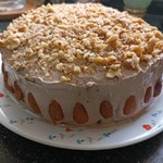 8. Верх и бока также промазываем кремом. Верх торта украшаем измельченными обрезками, бока измельченными орехами. Готово! Приятного аппетита!