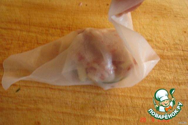 Как я рада тебя снова видеть, вернее твои вкусняшечки!!! Мне твой рецептик оч по душе пришелся, только вот рисовые листочки в первый раз вижу, у нас такие вряд ли есть!!! так что должна насладиться и за меня !!! Как же я соскучилась!!!