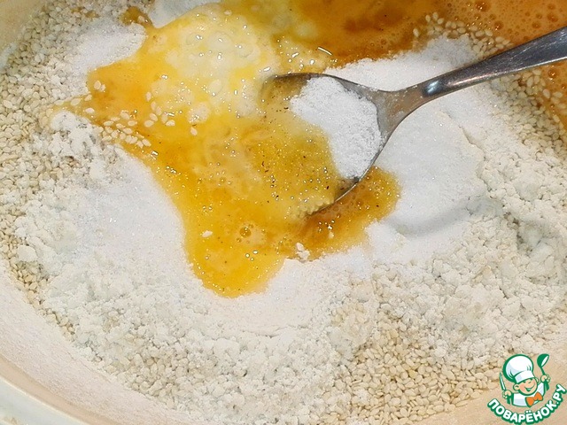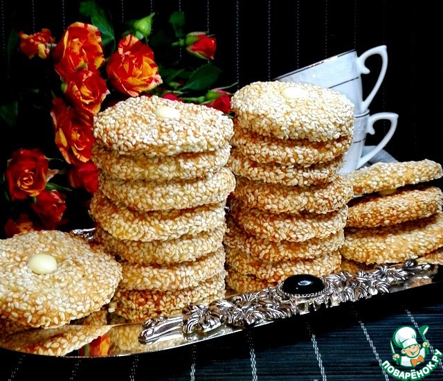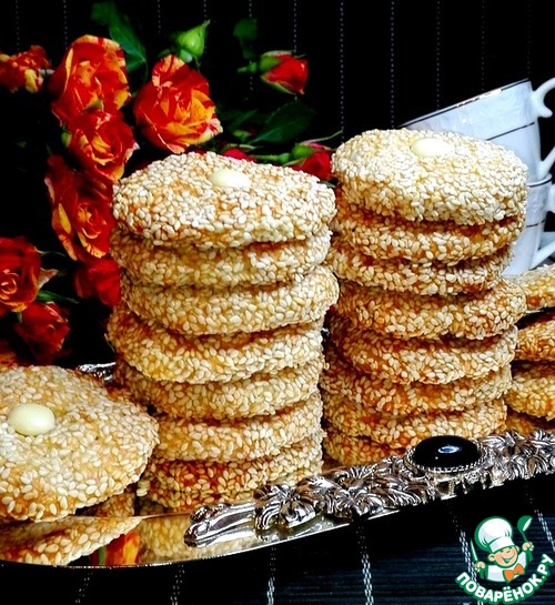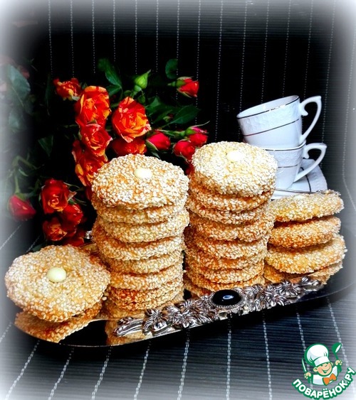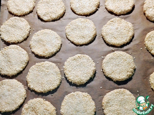 Рецепт «Кунжутное печенье с шоколадной пуговкой»: