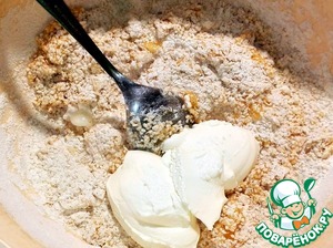 разрыхлитель, сок, ванилин и взбитое яйцо. -