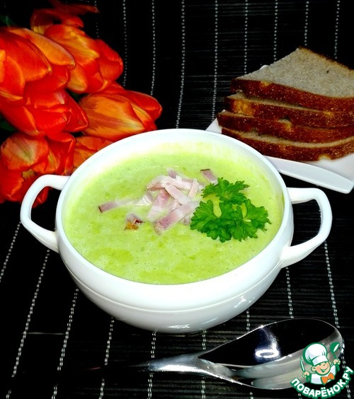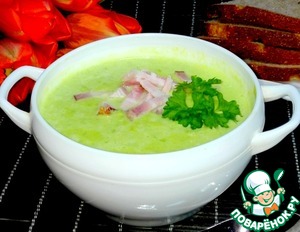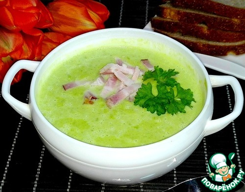 Суп-пюре из зеленого горошка с беконом.