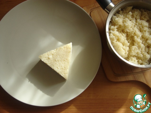 Готовится он быстро. Всего-то нужно его запарить кипятком 1 к 2 и накрыть крышкой. Когда он заберёт воду, посолить по вкусу и перемешать.