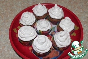 На День Рождения подружки приготовила маффины, увидев их, гости сразу же попросили чайку, в итоге пустой поднос и не съеденный праздничный торт. Шоколадные маффины с потрясающе вкусным зефирным кремом оценили все и просили рецептик! Готовится достаточно быстро и нехлопотно, а исчезает с тарелочки еще быстрее. Попробуйте и Вы! За рецепт спасибо Оле (oldeg)!