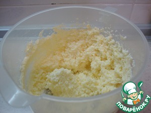 Масло комнатной температуры взбить с сахаром до пышного состояния в течении 3-х минут.